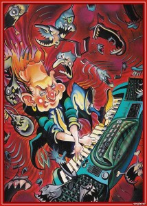 – My main controllers are a Palm Airdrum unit (with wireless hand controllers similar to a Wii system), heavily modified Roland Workstation, Wireless Airguitar System processed through the Concertone, and my acoustic drum kit fitted with triggers.